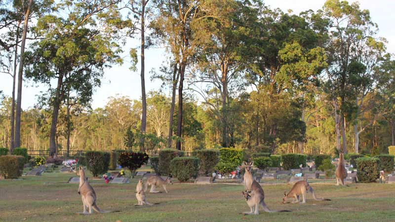 Established in 1988, the cemetery features an ancient Tallowwood tree, ceremonial space and a vine-covered arbour. Kangaroos are often seen foraging at dawn and dusk. The cemetery provides lawn burials, as well as ashes placements in columbarium walls.